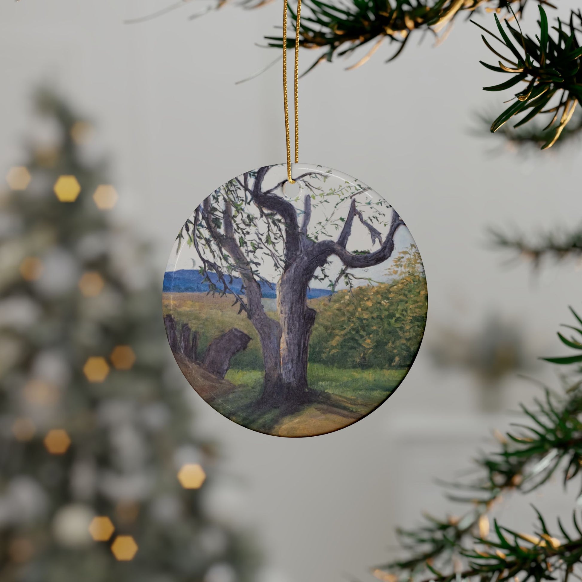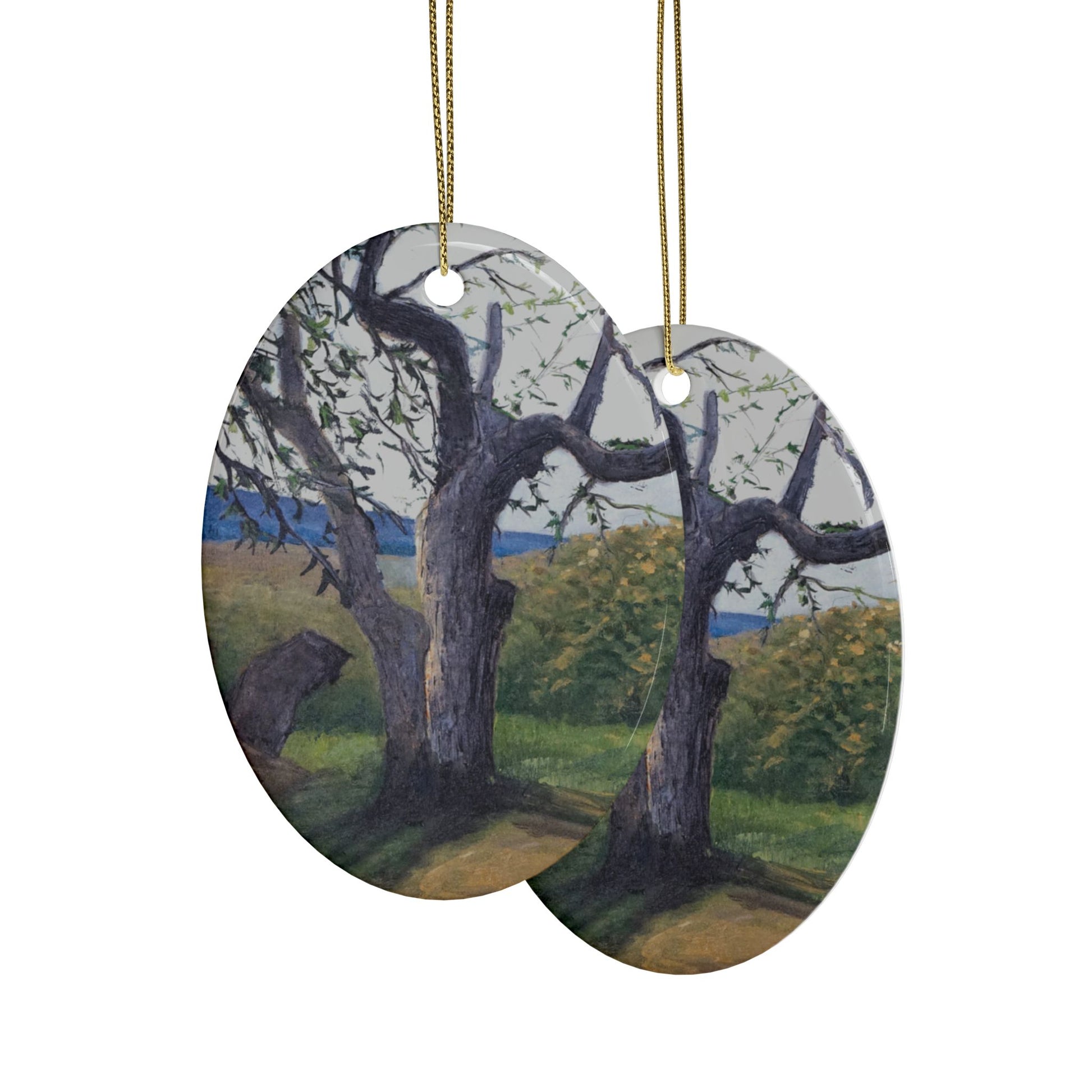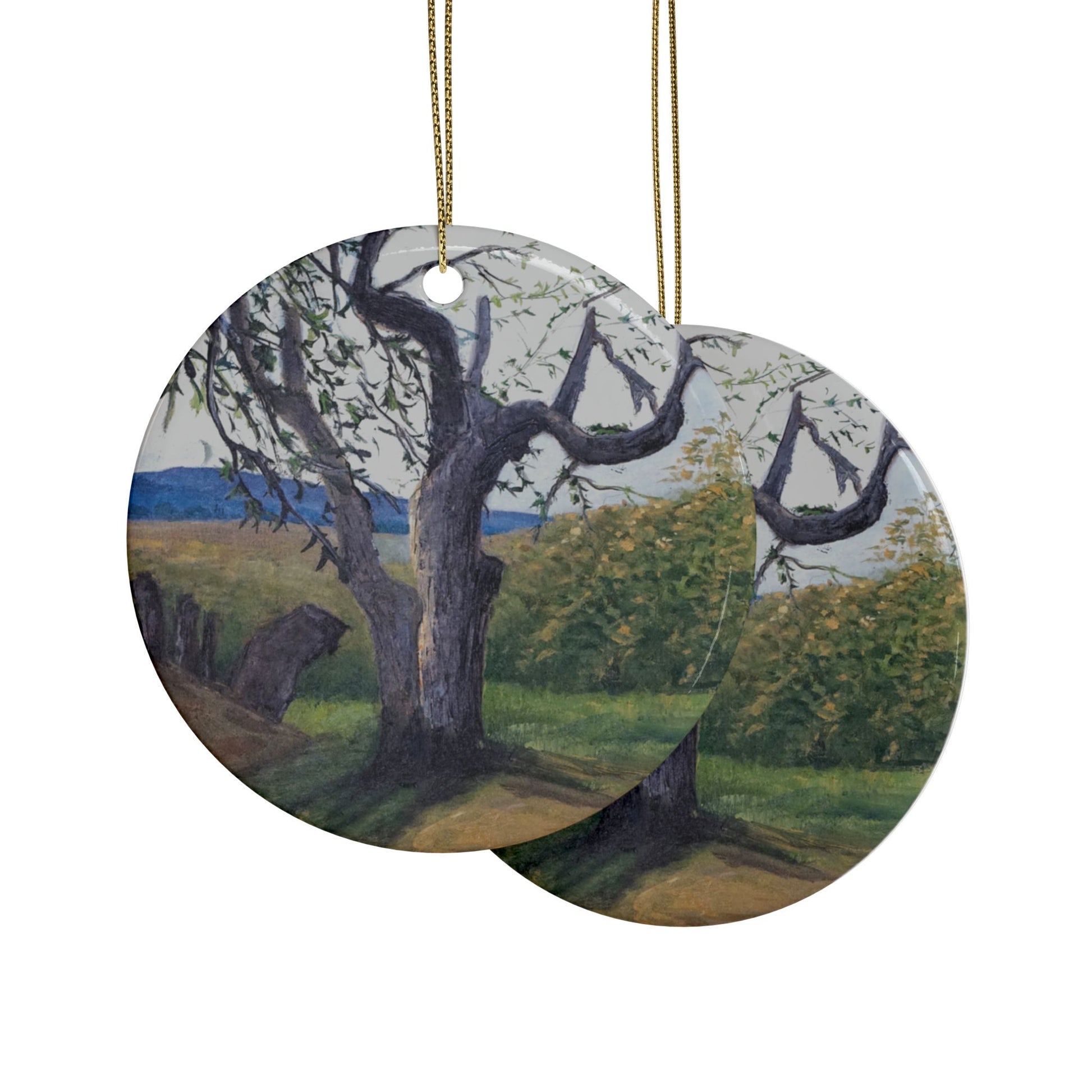 Bring the cozy vibes of the holidays into your home with these ceramic ornaments featuring a nature scene. Perfect for decorating your home or giving as a gift during the holiday season.
